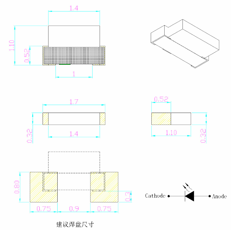 ◆Package ( L/W/H ) : 1.7× 0.32 × 1.1 mm