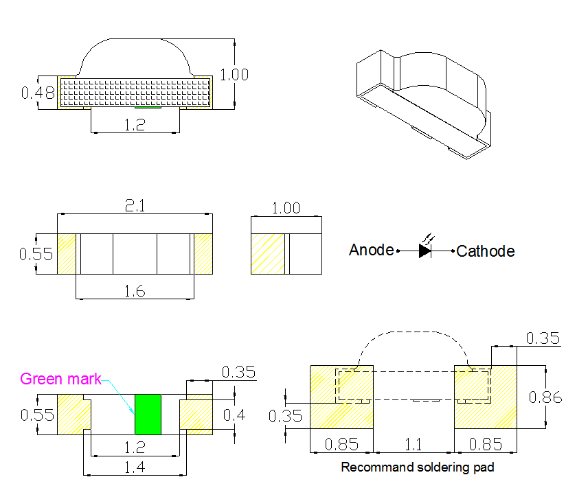 ◆Package ( L/W/H ) : 2.1 × 0.55 × 1.0 mm