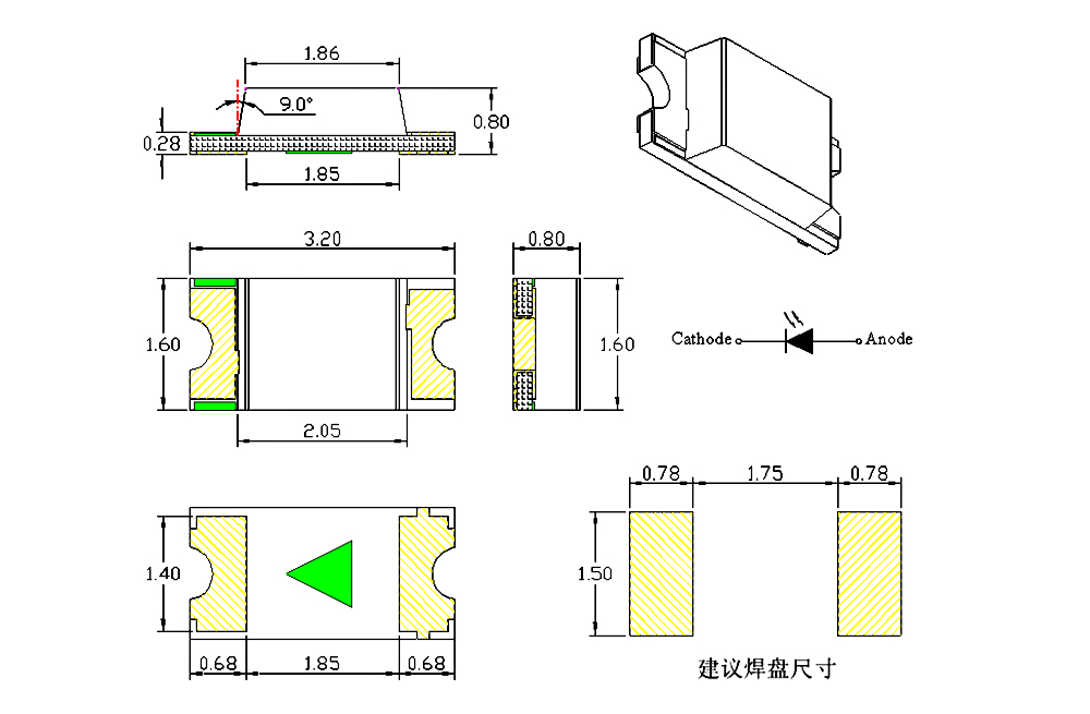 ◆Package ( L/W/H ) : 3.2× 1.6 × 0.8 mm