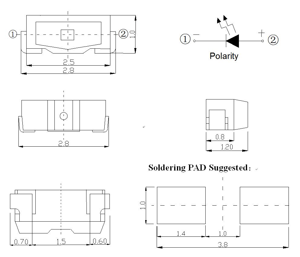 ◆Package ( L/W/H ) : 2.8 × 1.0 × 1.2 mm