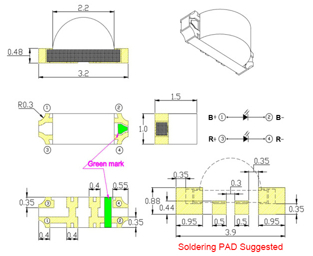 ◆Package ( L/W/H ) : 3.2×1.0×1.5mm