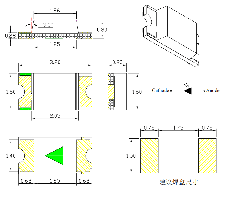 ◆Package ( L/W/H ) : 3.2 × 1.6 × 0.8 mm