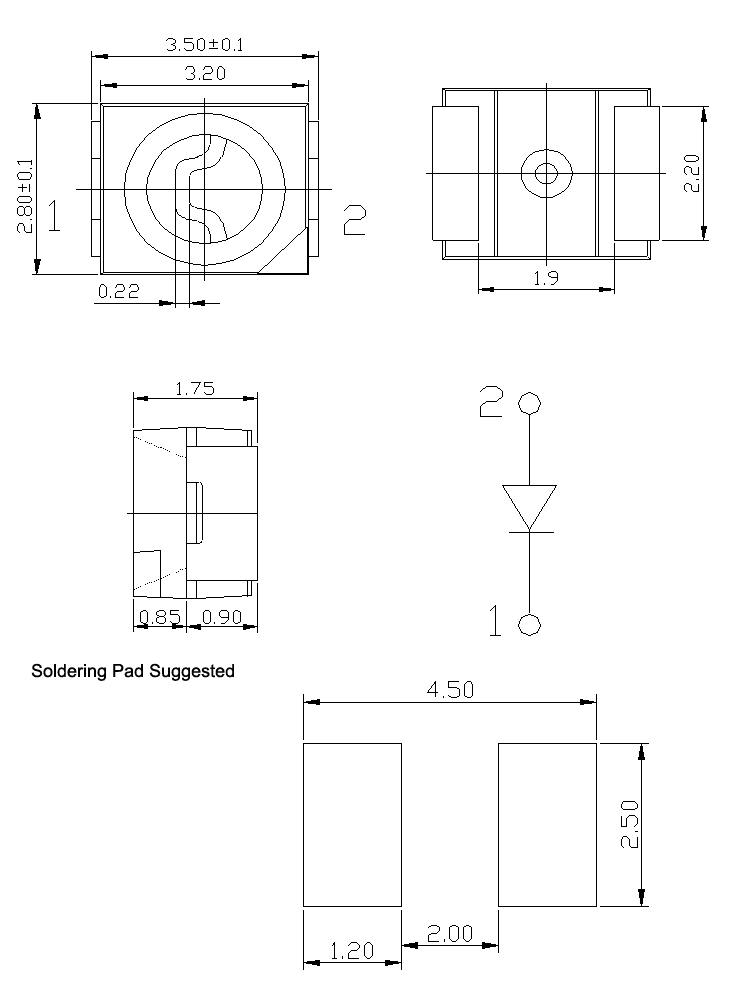 ◆Package ( L/W/H ) : 3.5 × 2.8 × 1.75 mm