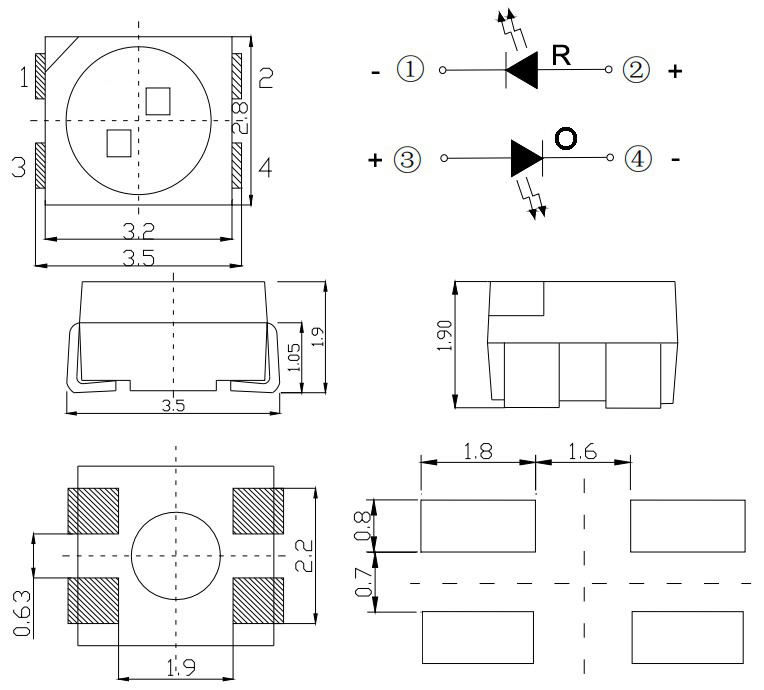 ◆Package ( L/W/H ) : 3.5 × 2.8 × 1.9 mm