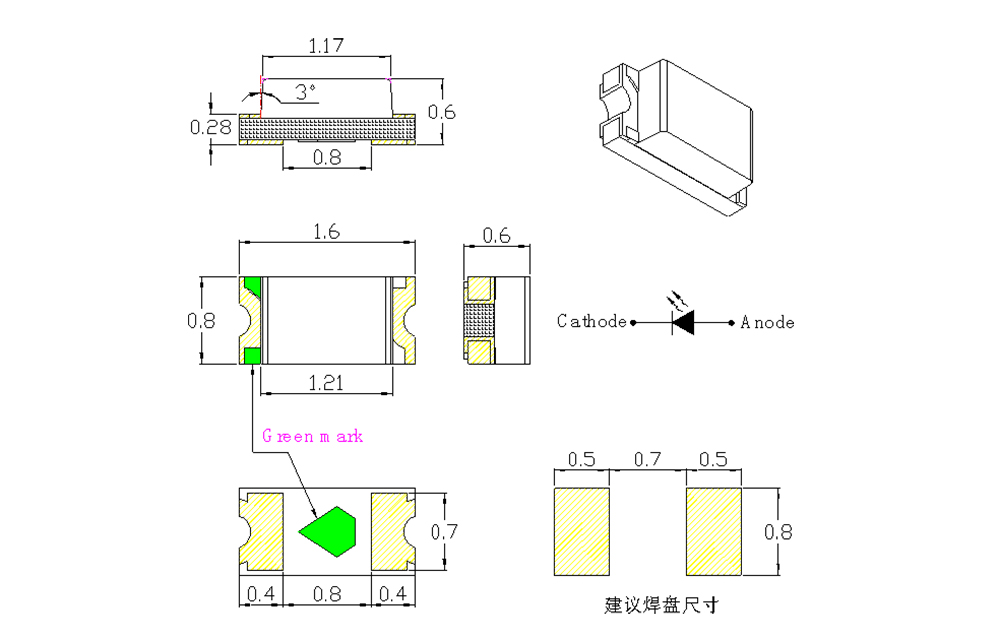 ◆Package ( L/W/H ) : 1.6 × 0.8 × 0.6 mm